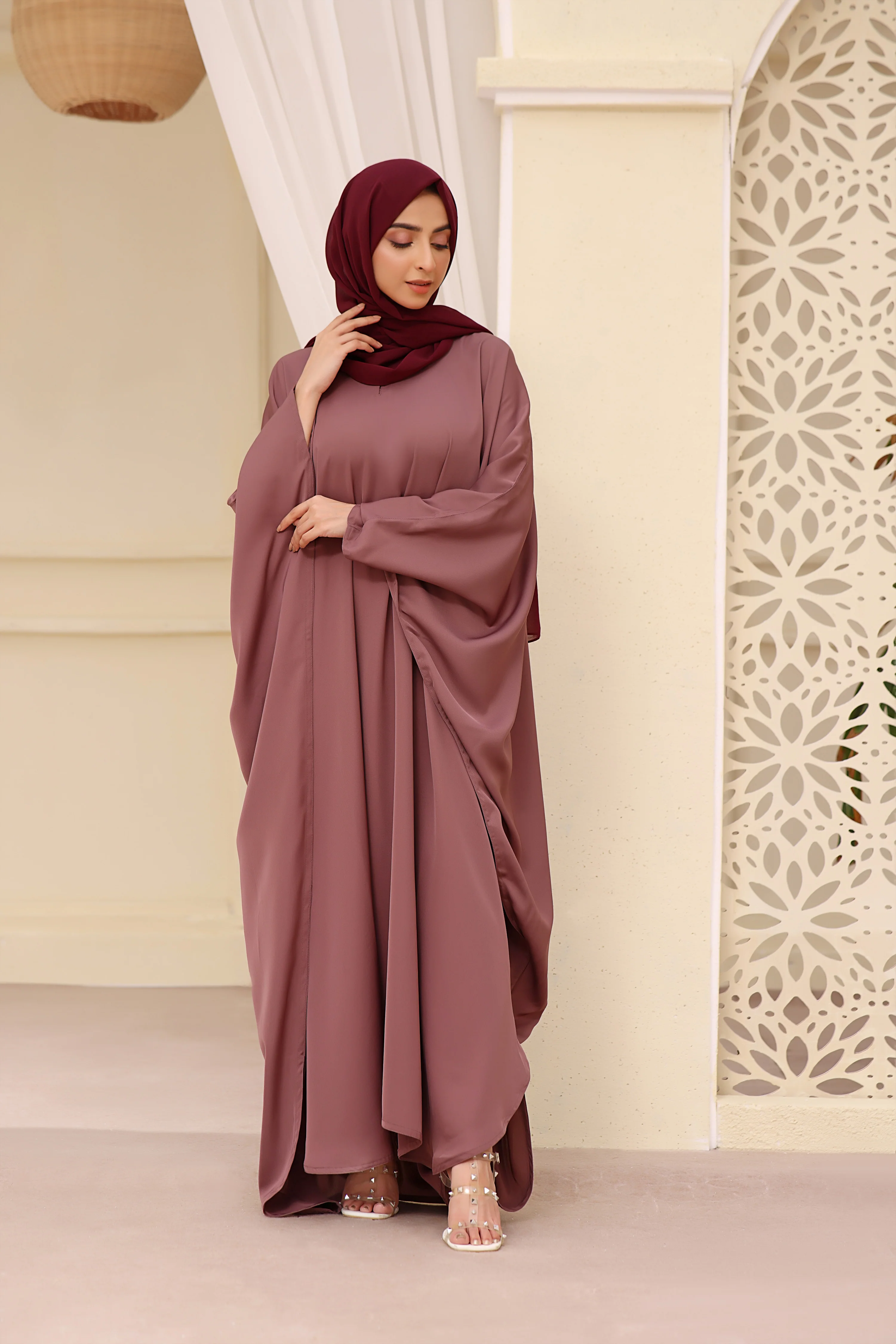 Classic Butterfly Abaya In Rose Mauve