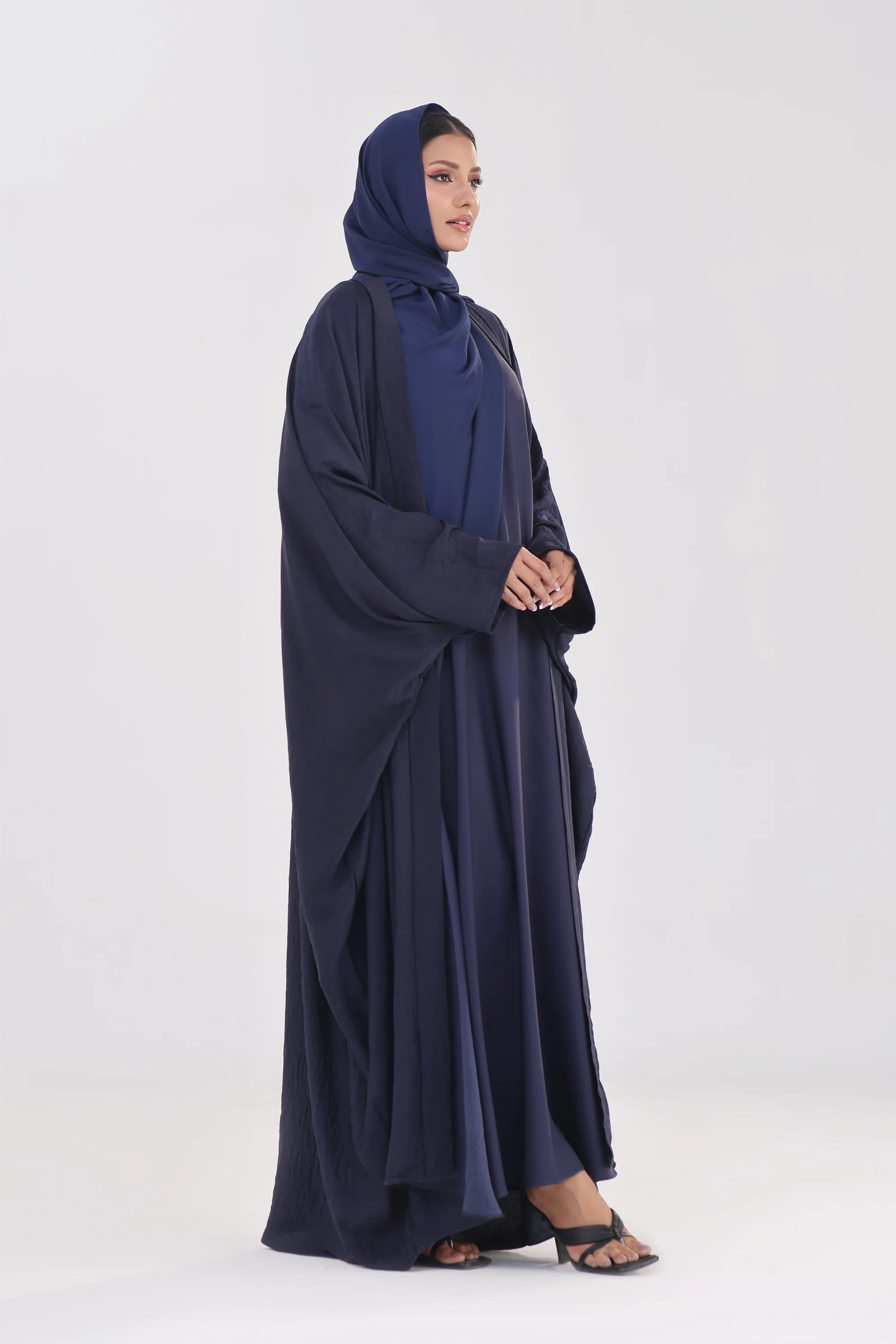 Luxe Layer Farasha Cut Abaya - Navy Blue